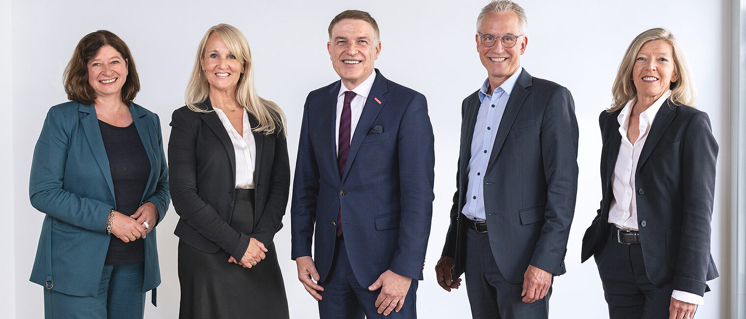 Die Geschäftsführung der Handwerkskammer zu Köln (von links): Stephanie Bargfrede (GB IV), Kirsten Müller (GB I), Dr. Erik Werdel (HGF), Jürgen Fritz (GB II) und Simone Marhenke (GB III)
