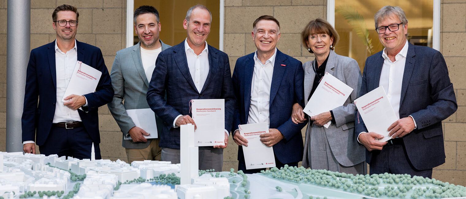 Das Handwerk ist ein wichtiger Wirtschaftsakteur in Köln und der Region: Die rund 10.000 Handwerksunternehmen in Köln übernehmen Versorgungs- und Servicefunktionen für die Bevölkerung und sind wichtige Zulieferer und Dienstleister für Gewerbe, Industrie und Handel. Mit der Kooperationsvereinbarung 'Masterplan Handwerk' setzen die Stadt Köln, die Handwerkskammer zu Köln und die Kreishandwerkerschaft Köln ein deutliches Zeichen für die hohe Bedeutung des Handwerks als Wirtschaftsfaktor. Für die Stadt unterzeichneten am Donnerstag, 18. September 2025, im Spanischen Bau Oberbürgermeisterin Henriette Reker und Andree Haack, Beigeordneter für Wirtschaft, Stadtentwicklung, Digitalisierung und Regionales die Vereinbarung. Unterzeichner für die HWK Köln sind Präsident Thomas Radermacher und Hauptgeschäftsführer Dr. Erik Werdel; für die Kreishandwerkerschaft Kreishandwerksmeister Nicolai Lucks und Hauptgeschäftsführer Roberto Lepore.