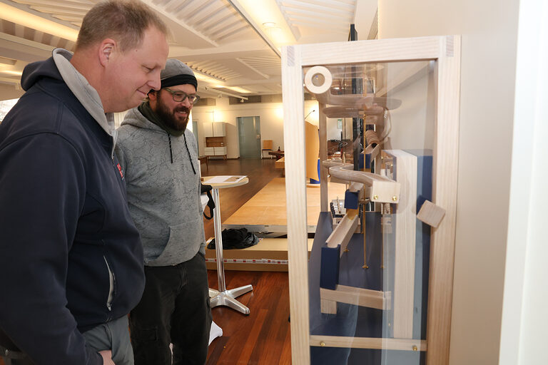 24 Tischlerinnen und Tischler haben in den vergangenen Wochen intensiv an ihren Meisterstücken gearbeitet. Die entstandenen Möbelstücke – darunter eine Murmelbahn, ein Spieltisch, ein formschönes Sitzmöbel, hochwertige Bettgestelle und aufwendig gearbeitete Kommoden – verbinden kreatives Design mit Funktionalität.