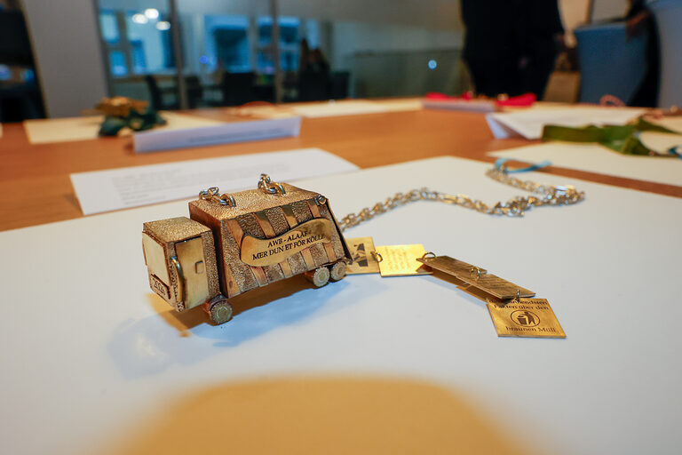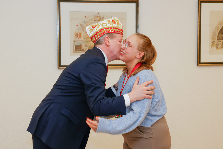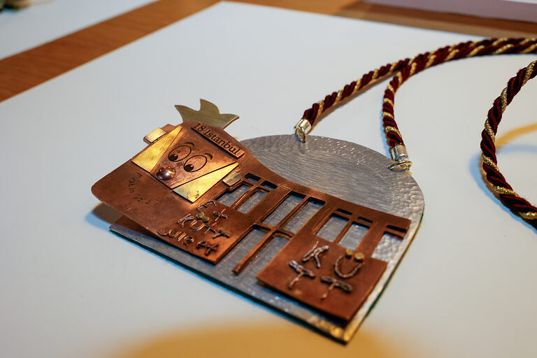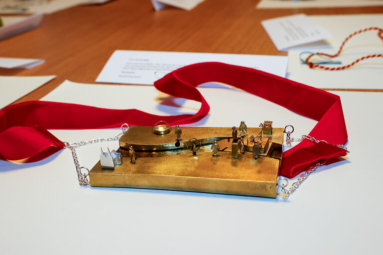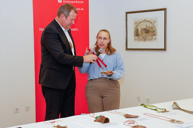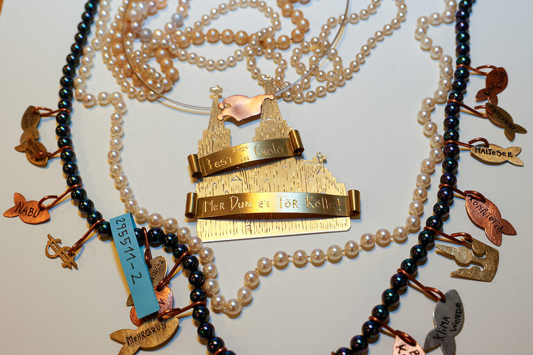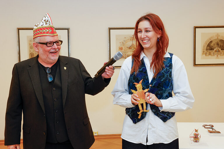 Mit dem Sonderpreis der Kreissparkasse Köln wurde Sara Helms (Goldschmiede Böcking, Köln) für ihren Orden Hand in Hand belohnt. Die miteinander verbundenen Figuren zeigen, wie eng die Menschen im Kölner Karneval zusammenstehen, vereint in der Liebe für ihre Stadt.