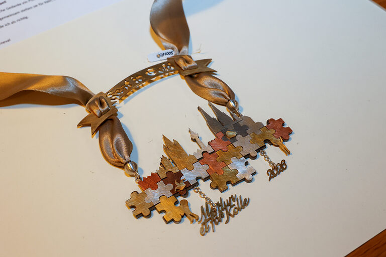 Mit dem dritten Platz wurde Hannah Homberg (Goldschmiede Palm, Bad Münstereifel) ausgezeichnet für ihren Orden Kölle is a Puzzlespell. Für die Preisträgerin ist der kölsche Gedanke ein Puzzle aus Vielfalt und buntem Treiben, wobei beides gemeinsam Kölns Stärke und Zusammenhalt ausmacht.