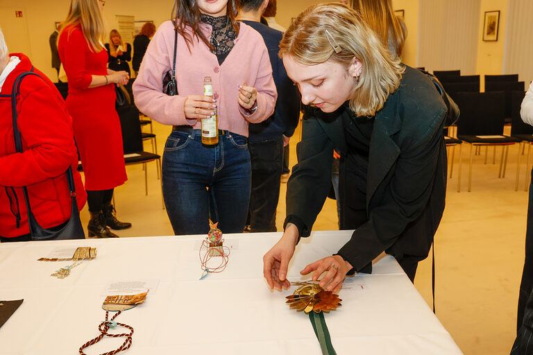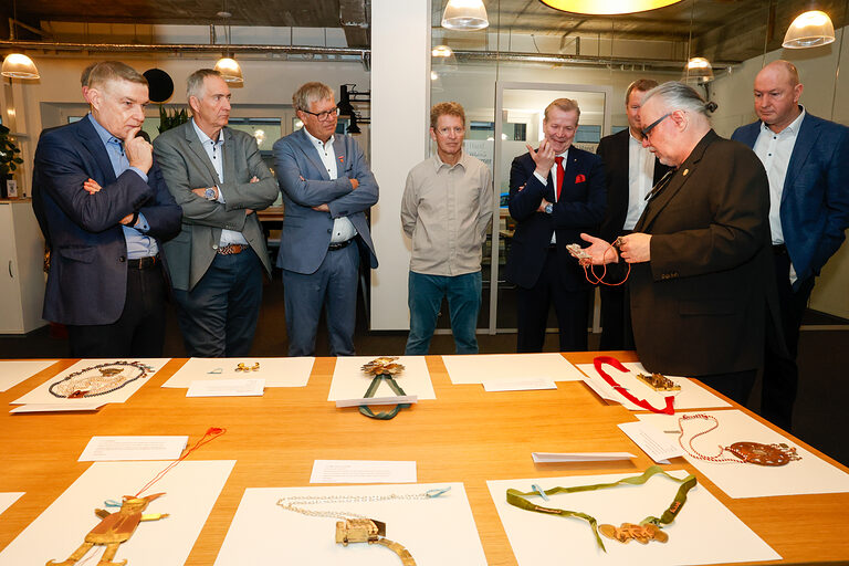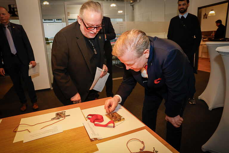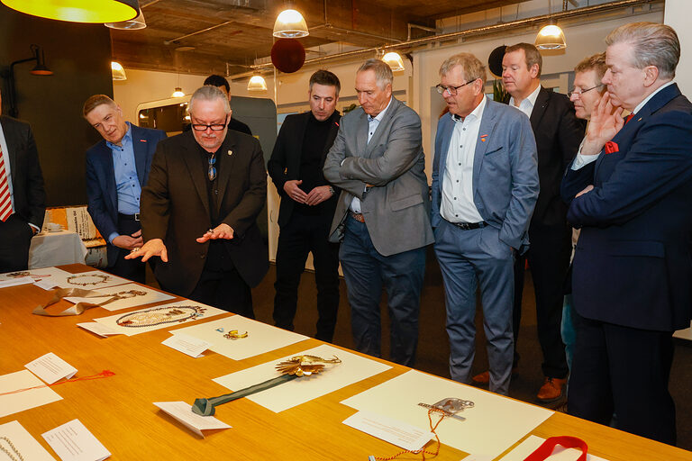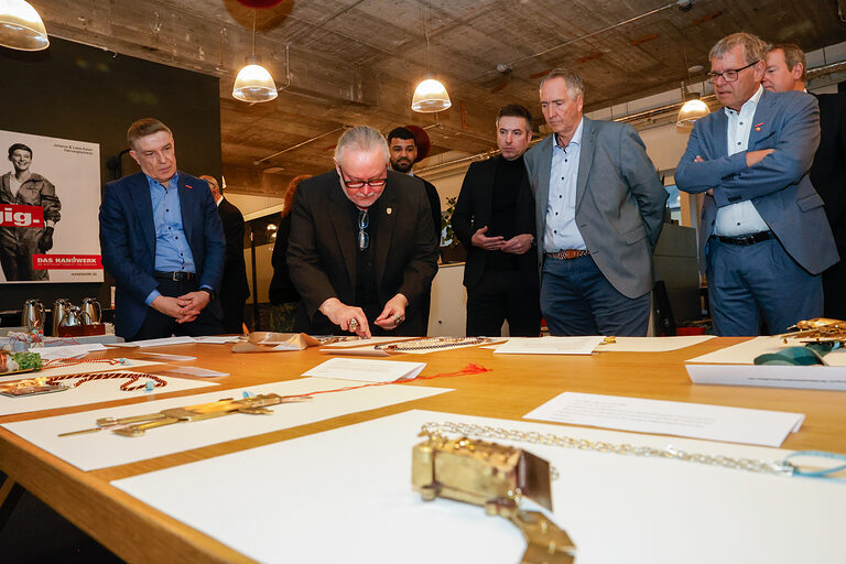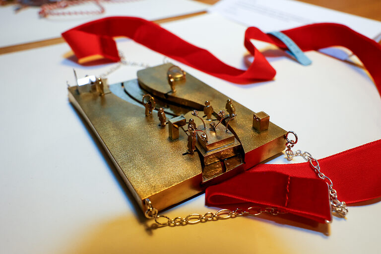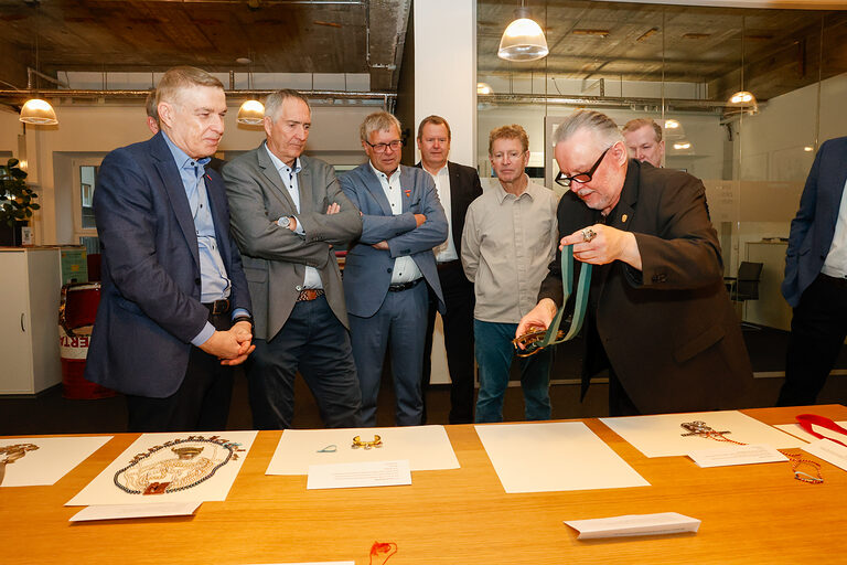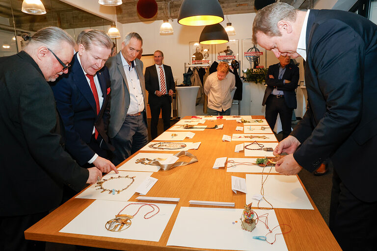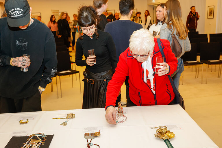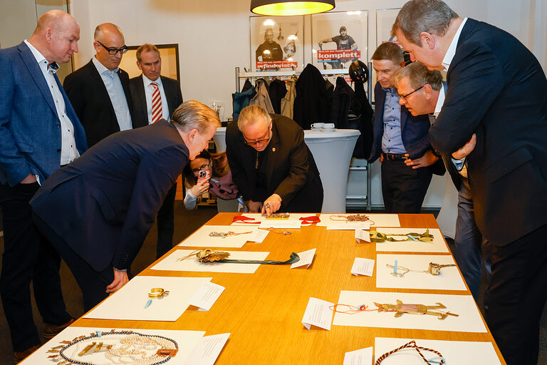 Bereits zum 46. Mal stellt die Kreissparkasse Köln Arbeiten von Nachwuchsgoldschmiedinnen und -schmieden des alljährlichen Ordenswettbewerbs des Vereins zur Studienförderung der Junggoldschmiede "Fest in Gold" e.V. in der Kassenhalle ihrer Hauptstelle am Neumarkt in Köln aus. Dort sind die sechzehn zum Wettbewerb eingereichten Orden vom 14. Januar bis 4. Februar 2026 während der Öffnungszeiten zu sehen. Sie wurden angefertigt von Junggoldschmieden von Unternehmen aus in Bad Münstereifel, Brühl, Dortmund, Erkelenz, Hanau, Lindlar, Köln, Mainz und Rhede.