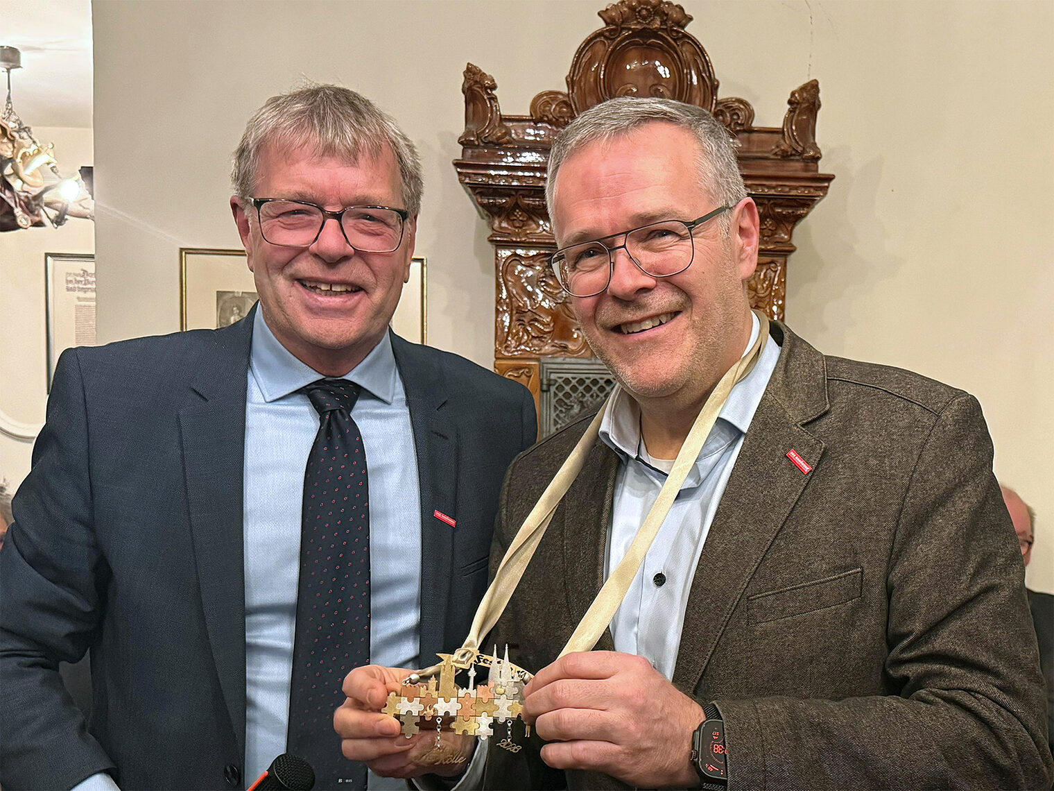 Am Rande einer Veranstaltung des Westdeutschen Handwerkskammertags (WHKT) nutzte Thomas Radermacher die Gelegenheit, um Jörg Dittrich mit einem handgefertigten Karnevalsorden auszuzeichnen und seine großen Verdienste um das Handwerk zu würdigen. Den Orden "Kölle is a Puzzlespell" der jungen Goldschmiedin Hannah Homberg sollte der Präsident des Zentralverbands des Deutschen Handwerks (ZDH) ursprünglich im Februar beim "Fest in Gold" der HWK Köln erhalten. Die Wetterbedingungen verhinderten seine Anreise – nun freute er sich in München über die Auszeichnung.