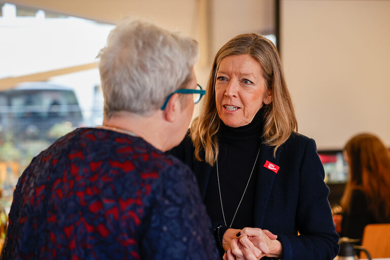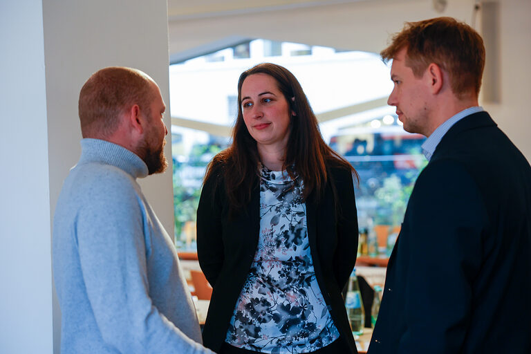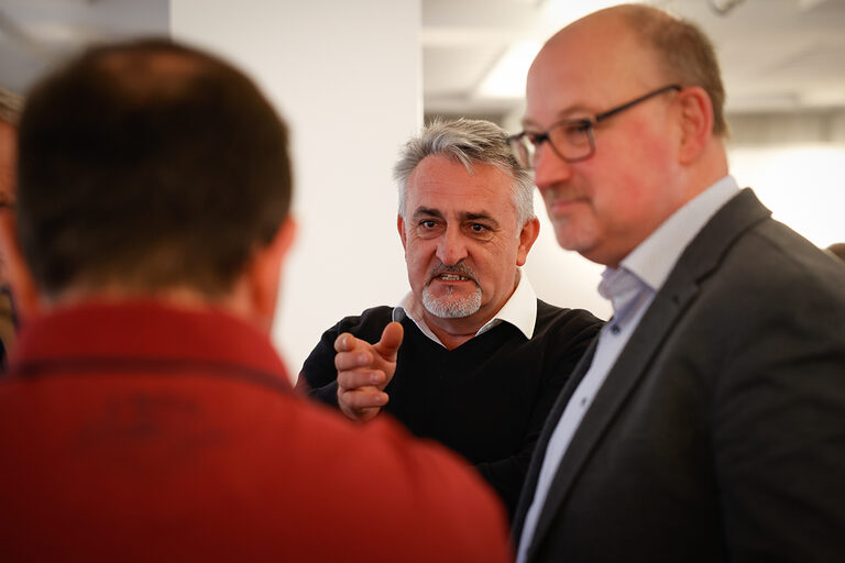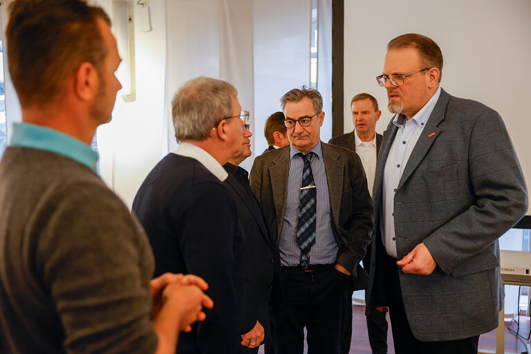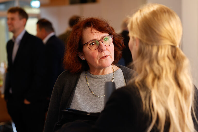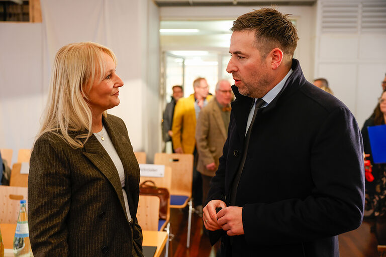 Im Anschluss daran stellten die Geschäftsführerinnen einzelner Geschäftsbereiche zentrale Projekte und Arbeitsschwerpunkte vor. Simone Marhenke, Geschäftsbereich III (Bildung), berichtete über die zukünftige Modernisierung des Ausbildungs- und MeisterCampus mit dem Ziel, moderne und leistungsfähige Ausbildungsstätten zu schaffen. Stephanie Bargfrede, Geschäftsbereich IV (Unternehmensberatung, Handwerkspolitik und Internationales), legte den Fokus auf die handwerkspolitische Interessensvertretung – darunter Aktivitäten zur Kommunalwahl sowie den Masterplan Handwerk in Köln und Bonn. Zudem stellte sie Projekte zur Fachkräfteeinwanderung, eine Veranstaltung zu Exoskeletten und das HWK-Beratungsangebot zur Digitalisierung inklusive einer KI-Beratung vor.