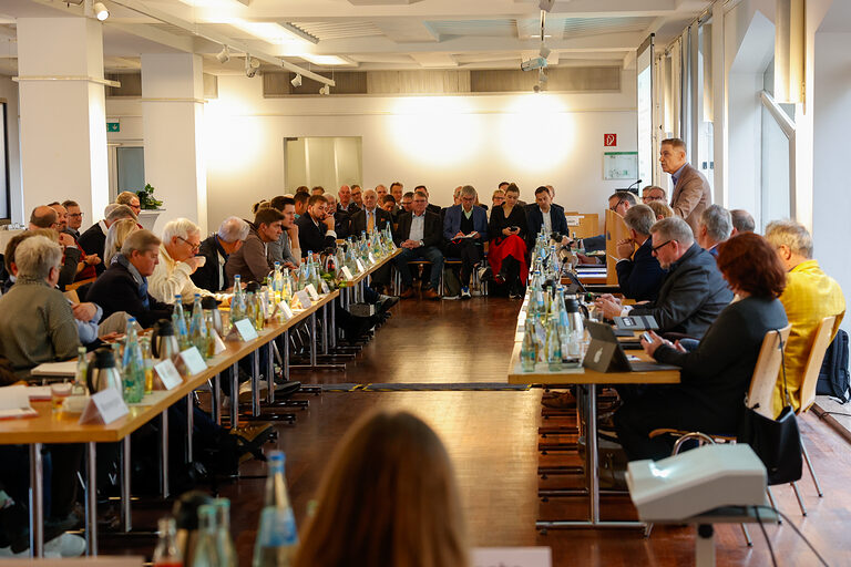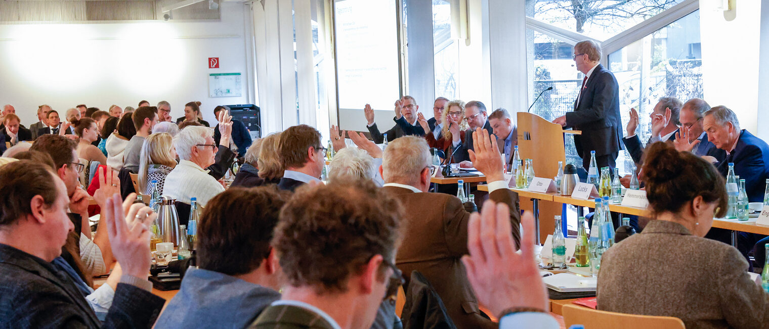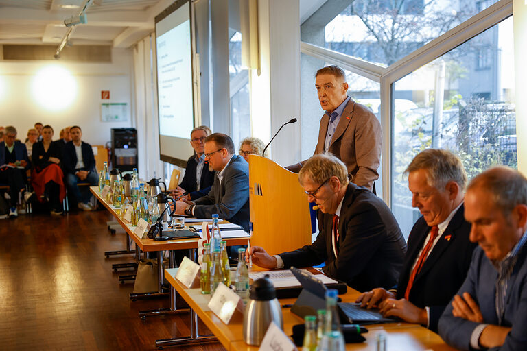 In seinem Bericht ordnete er außerdem die wirtschaftspolitische Lage mit Blick auf Berlin und Brüssel ein und forderte von der Politik, zeitnah sichtbare Ergebnisse zu liefern, um den Wirtschaftsstandort Deutschland wieder nach vorne zu bringen. "Ich glaube, unsere Wirtschaft und insbesondere das Handwerk haben das Potenzial, den Umschwung zu schaffen. Dafür braucht es allerdings eine Wirtschaftspolitik, die endlich ins Handeln kommt", sagte Radermacher. Zudem ordnete er die Kommunalwahl 2025 und deren Folgen für das Handwerk im Kammerbezirk ein. Radermacher betonte, dass das regionale Handwerk das Rückgrat der Städte und Gemeinden sei, Arbeitsplätze schaffe, Fachkräfte ausbilde und mit seinen Dienstleistungen und Produkten die Nahversorgung und Lebensqualität vor Ort sichere. Er erinnerte daran, dass es nun auf kommunaler Ebene gute Rahmenbedingungen brauche, auf deren Grundlage sich das Handwerk optimal einbringen könne. Dringenden Handlungsbedarf sieht Radermacher beispielsweise in einer handwerksfreundlichen Verkehrspolitik, der Bereitstellung notwendiger Flächen und einer wirtschaftsfreundlichen Steuer- und Abgabenpolitik.