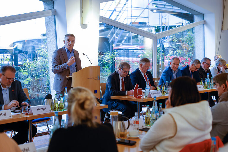Danach berichtete HWK-Hauptgeschäftsführer Dr. Erik Werdel insbesondere über die Modernisierung der Kammerorganisation. Derzeit arbeitet die Handwerkskammer daran, ihren Service für die Mitgliedsbetriebe künftig schneller, transparenter und bedarfsorientierter zu gestalten. Dr. Werdel: "Unsere Verwaltung bildet ein stabiles Fundament, auf dem wir unseren Service für das Handwerk weiterentwickeln. So stellen wir uns intern strukturell und rechtssicher so auf, dass wir nach außen hin als moderner Dienstleister wahrgenommen werden. Hier sind wir auf einem guten Weg und unternehmen derzeit wichtige Schritte, um unseren Mitgliedsbetrieben einen verlässlichen und kundenorientierten Service zu bieten. Die Kolleginnen und Kollegen tragen jeden Tag dazu bei, dass wir die Interessen unserer Mitgliedsbetriebe wirkungsvoll unterstützen können – heute und in Zukunft."