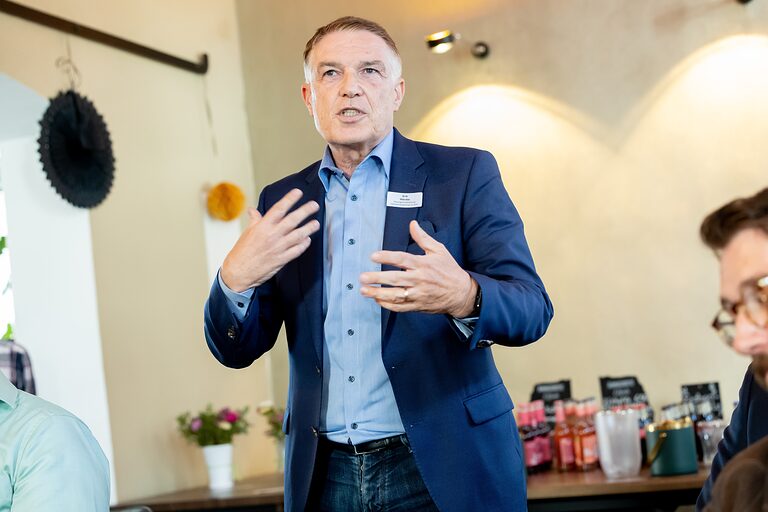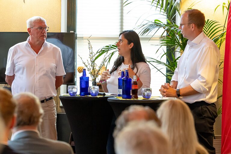 In der Weinbar Separée befragte Moderator Volker Groß (Chefredakteur Radio Bonn/Rhein-Sieg) die Landratskandidatinnen und Landratskandidaten der bisher im Kreistag des Rhein-Sieg-Kreises vertretenen Fraktionen: Landrat Sebastian Schuster (CDU), Landratskandidatin Sara Zorlu (SPD) und Landratskandidat Jörn Freynick (FDP). Es ging um Themen wie Bürokratieabbau, Infrastruktur, Mobilität und interkommunale Zusammenarbeit mit den Kommunen des Kreises sowie dem großen Nachbarn Bonn.