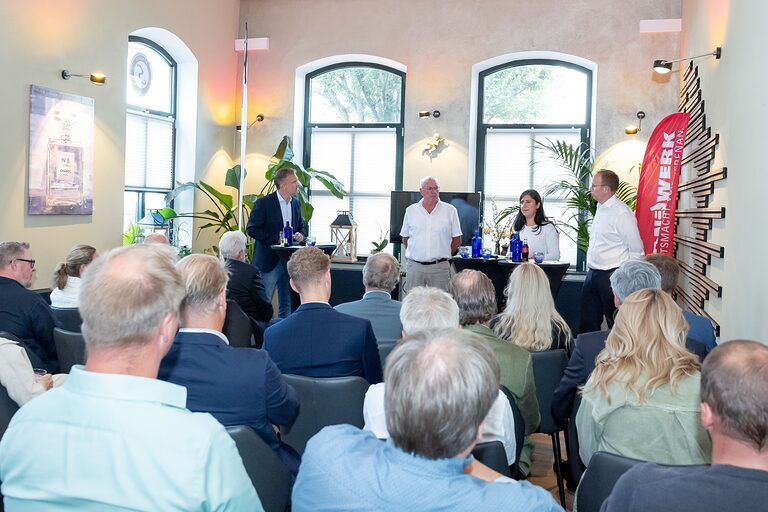 Wie gelingt der Strukturwandel im Rhein-Erft-Kreis? Darüber und über viele weitere Themen diskutierten am Dienstag die Kandidierenden für die Landratswahl im Rhein-Erft-Kreis im September. In die Hallen von JCB eingeladen hatten die Interessenvereinigung Frechener Unternehmen (IFU), die IHK Köln, die Handwerkskammer (HWK) zu Köln und die Kreishandwerkerschaft Rhein-Erft für das Handwerk begrüßte Kreishandwerksmeisterin und HWK-Vorstandsmitglied Martina Engels-Bremer. Den Fragen von Kathrin Post-Isenberg stellten sich Frank Rock (CDU), Iris Heinisch (SPD), Karl Heinz Spielmanns (Freie Wähler), Hans Decruppe (BSW) und Jannis Milios (Piraten). Christina Caruana-Rinkewitz (FDP) konnte krankheitsbedingt nicht teilnehmen. Im Fokus der Diskussion stand die Frage, wie die ansässige Wirtschaft gestärkt und der Strukturwandel in der Region sozial, wirtschaftlich und nachhaltig gestaltet werden kann. Dabei wurde deutlich: Der Strukturwandel, von dem der Rhein-Erft-Kreis durch den vorgezogenen Ausstieg aus der Braunkohle im Rheinischen Revier besonders betroffen ist, ist in vollem Gange. Doch Tempo, Richtung und Beteiligung sind noch offen.