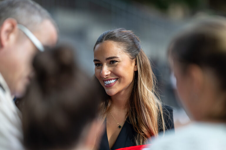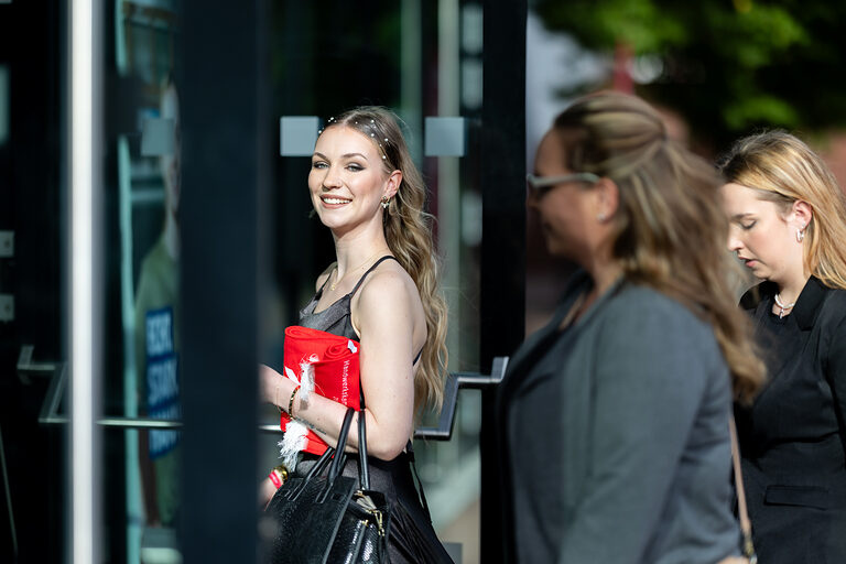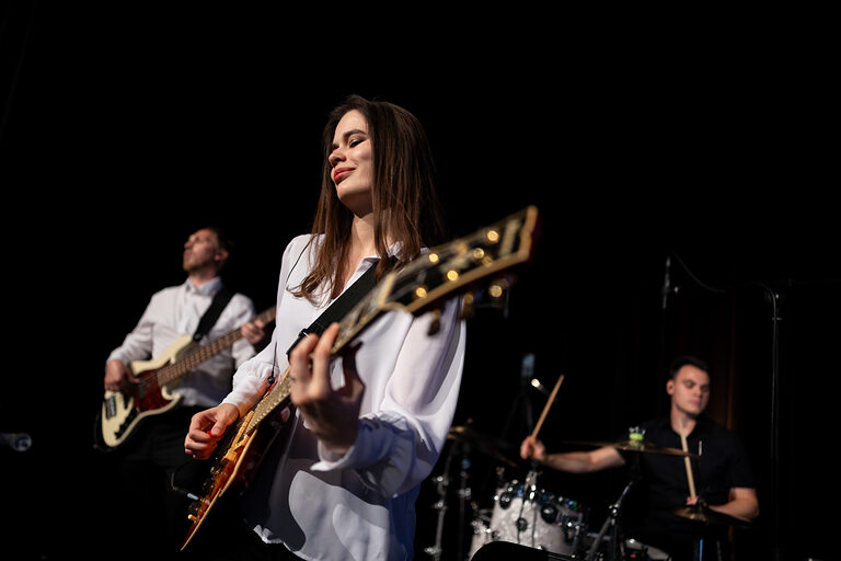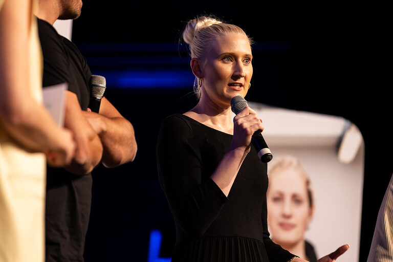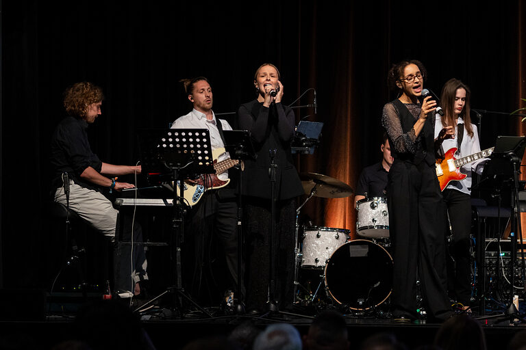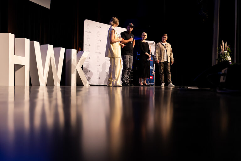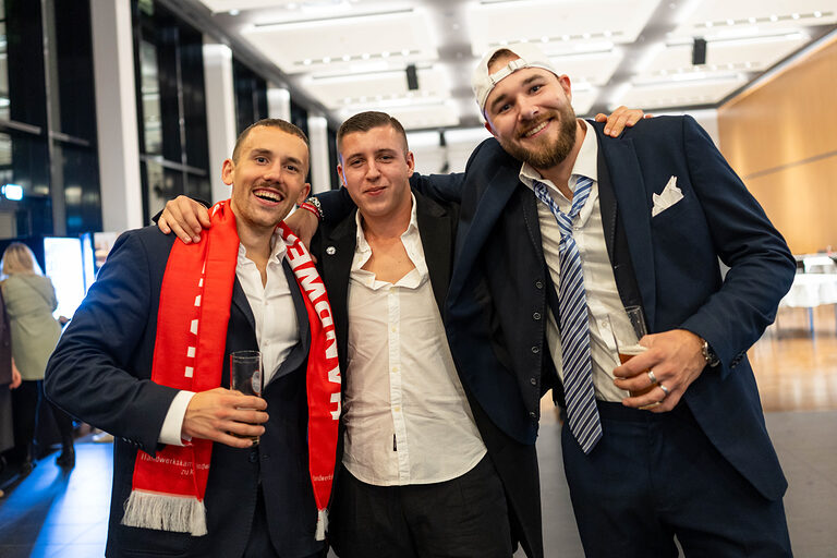 Moderatorin Linda Reitinger begrüßte im Bühnen-Talk Carina Straub, Geschäftsführerin der Abfluss ASS GmbH, Lukas Hemmersbach, Gründer der DeinDach by Hemmersbach GmbH und Philippe Meurer, Mitglied im Prüfungsausschuss der Handwerkskammer zu Köln. Straub lud die frisch gebackenen Absolventinnen und Absolventen in das Netzwerk "Junge Handwerksunternehmer:innen der Handwerkskammer zu Köln" ein, Meurer warb für ein ehrenamtliches Engagement als Prüferin oder Prüfer. Hemmersbach berichtete von seinen Erfahrungen als Gründer und Unternehmer im Handwerk. Für ein passendes Rahmenprogramm während der Meisterfeier sorgte die Band "Tanzcapella".