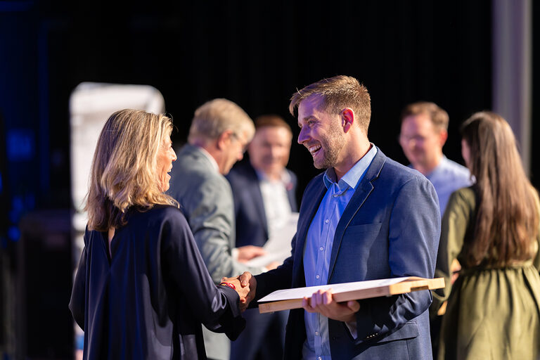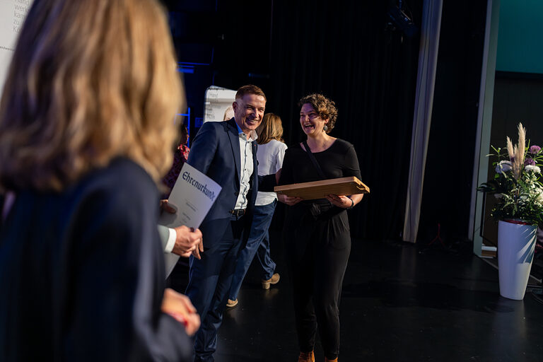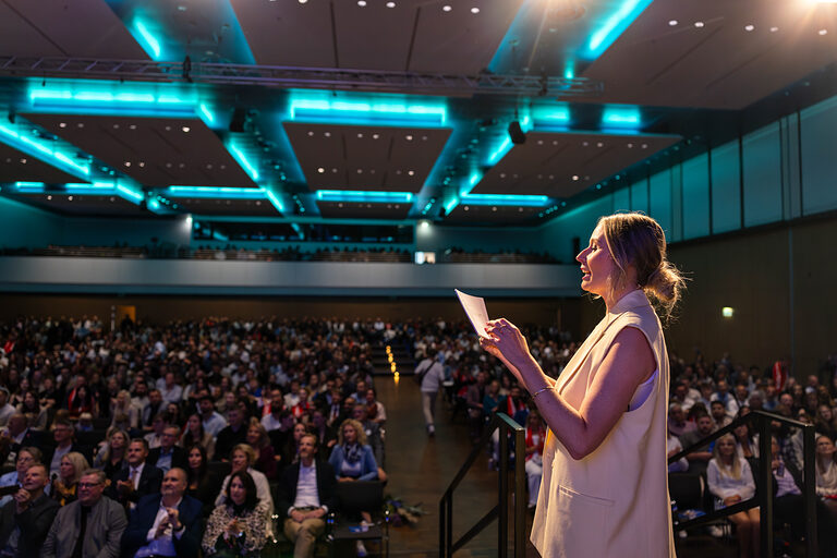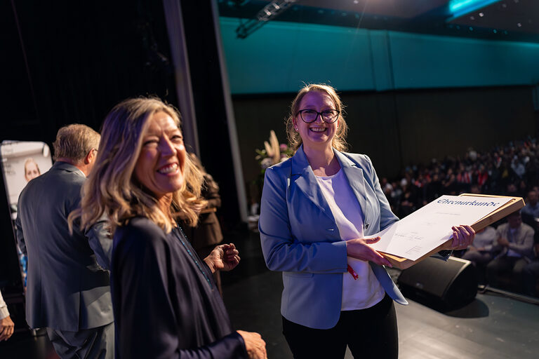Die Handwerkskammer zu Köln bereitete den erfolgreichen Absolventinnen und Absolventen im Beisein ihrer Familien und Freunde im RHEIN SIEG FORUM eine große Bühne. Per Videogrußwort übermittelte Nordrhein-Westfalens stellvertretende Ministerpräsidentin und Wirtschaftsministerin Mona Neubaur ihre Glückwünsche und bescheinigte dem Handwerksnachwuchs "Mut, Disziplin und Leidenschaft". In feierlichem Rahmen überreichten seitens der HWK deren Präsident Thomas Radermacher, Hauptgeschäftsführer Dr. Erik Werdel und Simone Marhenke, Geschäftsführerin Bildung, den Prüfungsbesten in den verschiedenen Gewerken die Ehrenurkunden.