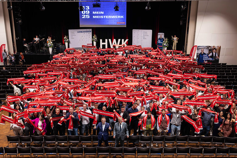 Präsident Thomas Radermacher: "Herzlichen Glückwunsch an alle Absolventinnen und Absolventen für ihre großartigen Leistungen! Unsere neuen Meisterinnen und Meister haben das, was unser Land dringend braucht: das Können und den Willen, Verantwortung zu übernehmen und die Zukunft zu gestalten. In Zeiten des Fachkräftemangels sind sie nicht nur gefragte Expertinnen und Experten im Handwerk, sondern auch Führungspersönlichkeiten, Ausbilder und Unternehmer von morgen. Der Meistertitel eröffnet vielfältige Karrierewege – vom eigenen Betrieb über Führungspositionen bis hin zum Hochschulstudium. Jede einzelne Meisterprüfung ist ein starkes Signal: Das Handwerk bietet beste Chancen, Perspektiven und Sicherheit. Wer heute Meisterin oder Meister wird, gestaltet nicht nur seine eigene Zukunft, sondern sichert auch die Zukunft unseres Wirtschaftsstandorts."