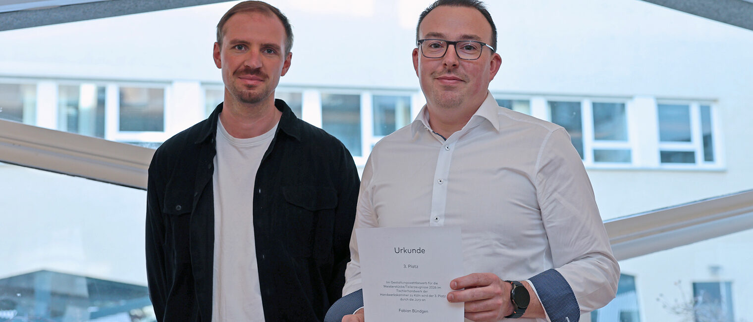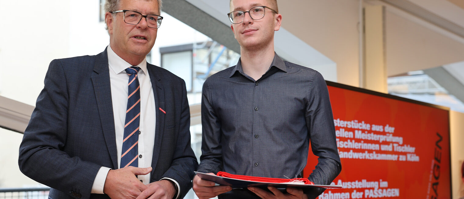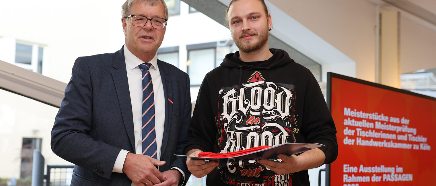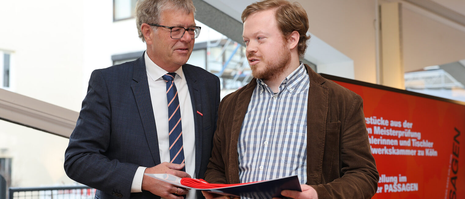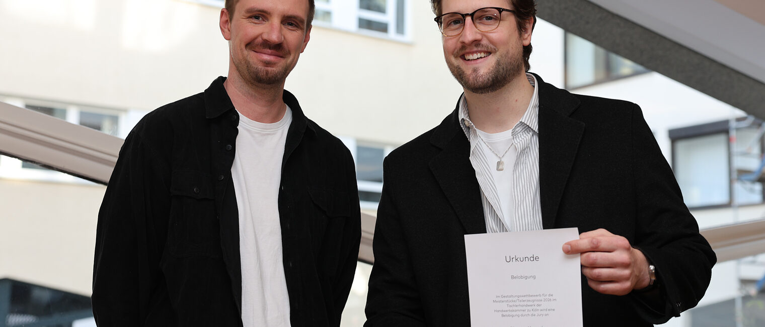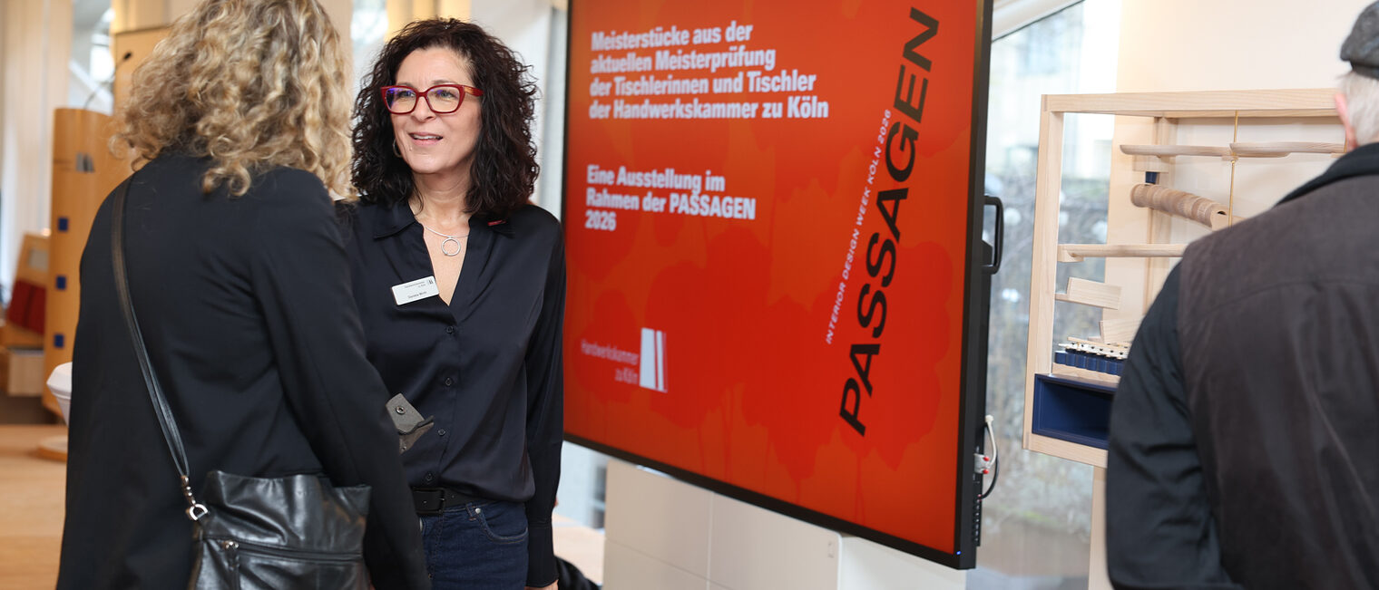 Nach erfolgreicher Präsentation vor dem Prüfungsausschuss freuten sich die Handwerkerinnen und Handwerker, ihre Meisterbriefe entgegennehmen zu können. Im Anschluss an die feierliche Urkundenübergabe wurde der Hans-Langemann-Saal der Kölner Handwerkskammer zum Showroom: Im Rahmen des renommierten Designfestivals ›Passagen 2026‹ waren die Meisterstücke öffentlich ausgestellt.