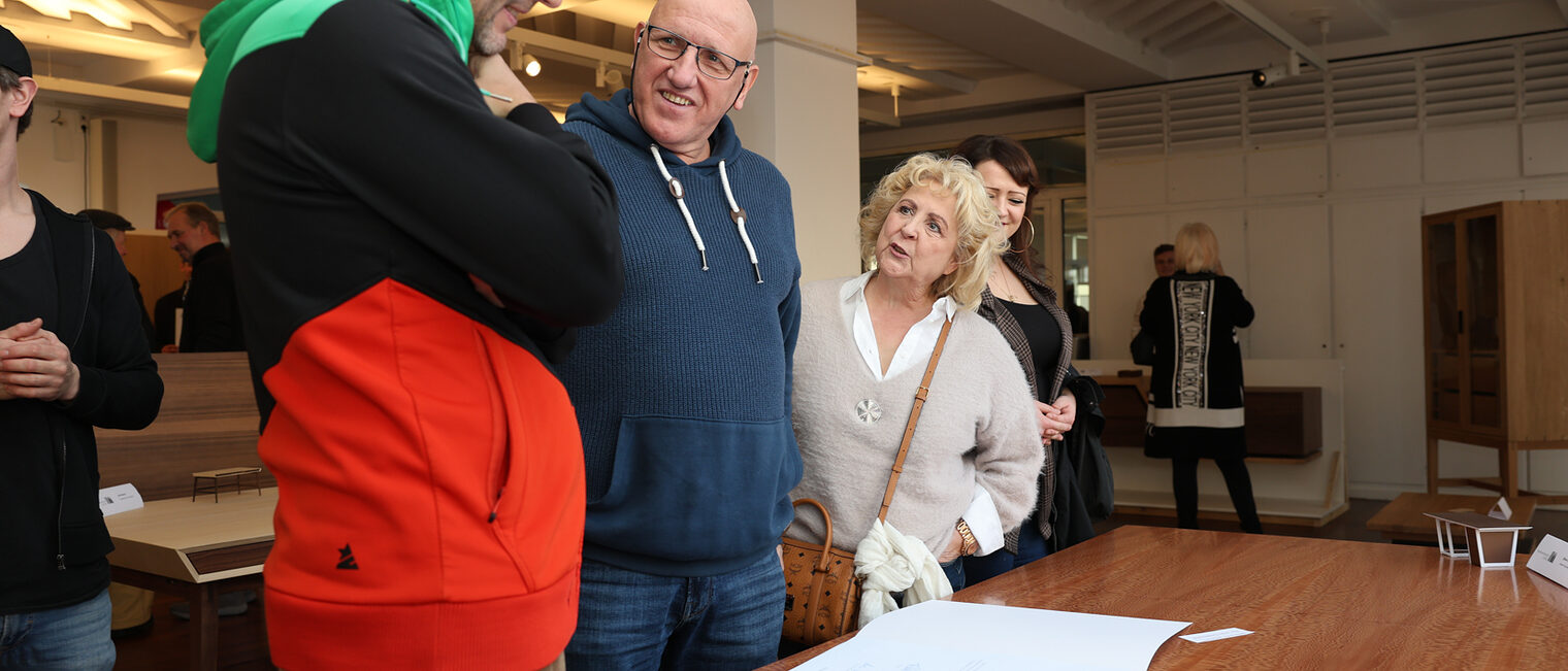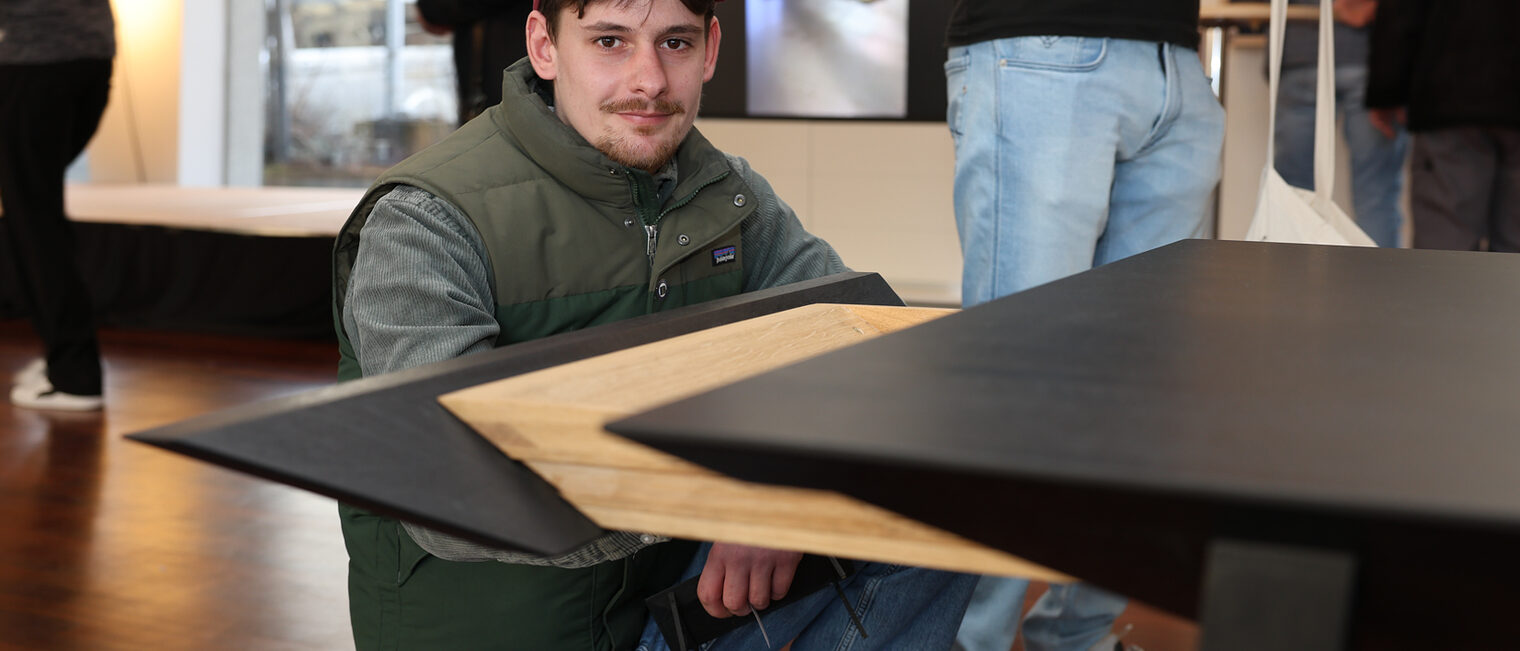 24 Tischlerinnen und Tischler haben in den vergangenen Wochen intensiv an ihren Meisterstücken gearbeitet. Die entstandenen Möbelstücke – darunter eine Murmelbahn, ein Spieltisch, ein formschönes Sitzmöbel, hochwertige Bettgestelle und aufwendig gearbeitete Kommoden – verbinden kreatives Design mit Funktionalität.